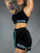 Introducing our black and teal versatile training shorts. Originally designed for MMA and combat workouts, these shorts offer a relaxed fit whether you’re in the ring, hitting the gym, or dominating outdoor workouts. Featuring a traditional wide-leg cut for unrestricted movement, a comfortable and wide elastic waistband, and lightweight, sweat-wicking fabric, they are built to keep up with your every move. Maximizing mobility, breathability and durability.